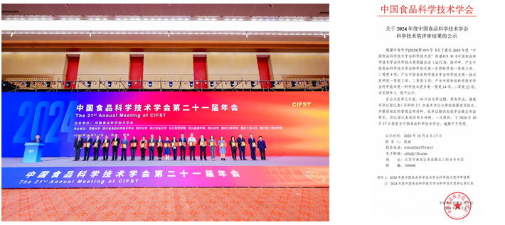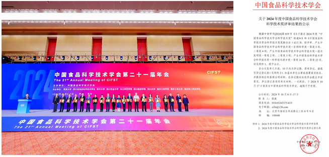 备注:数据来源自中国食品科学技术学会官网,在 “基金与奖励”关于2024年度中国食品科学技术学 会科学技术奖评审结果的公示, 查询公示信息。