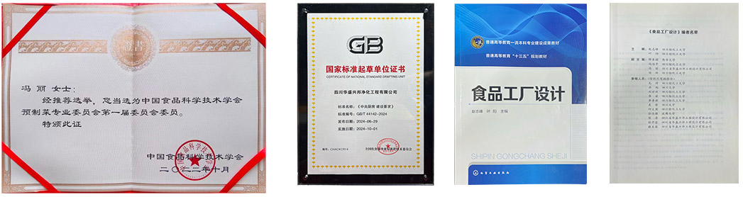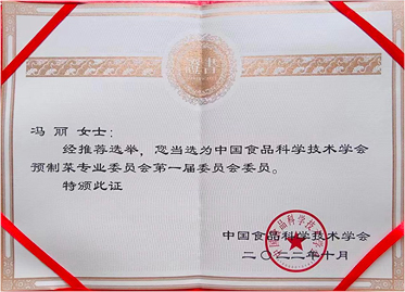 备注:2022年10月26日中国食品科学技术学 会预制菜专业委员会第一届委员会成立大会在 大连成功召开,我司四川省华盛兴邦工程设计 有限公司总经理冯丽当选为第一届委员会委员 数据来源中国食品科学技术学会官网在 “分支 机构 - 预制菜专业委员会” 栏目查询公示信息。